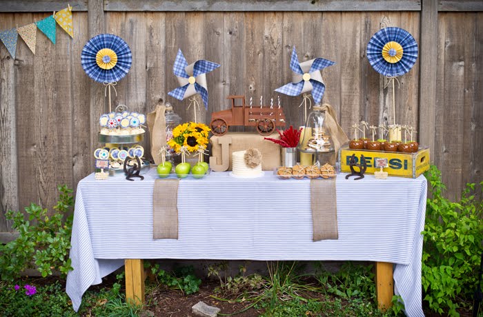Lisa from Step Brightly Creative Group styled this little boys Burlap and Bluegrass birthday party and we love it!...