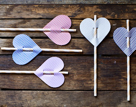 grey and white stripe paper straw, holding hearts together with a dab of glue.